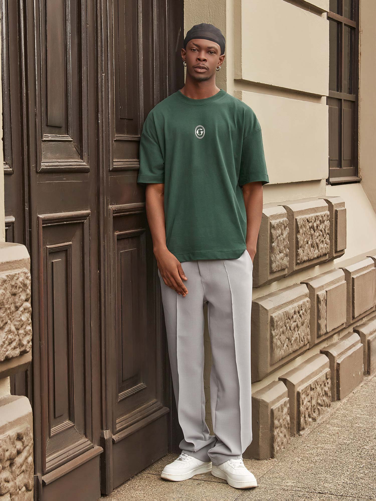 Pantalón con pinzas gris tiro alto